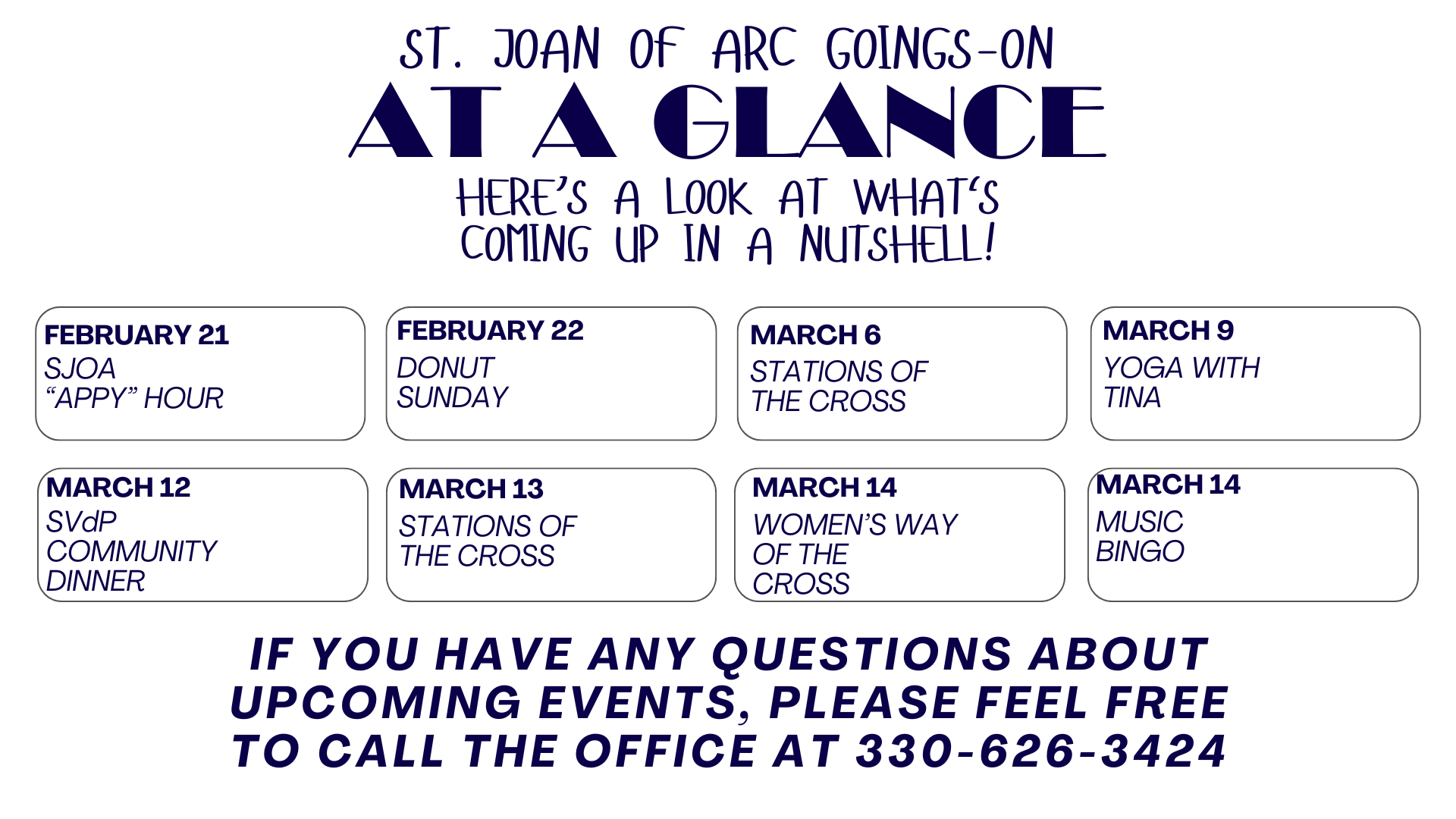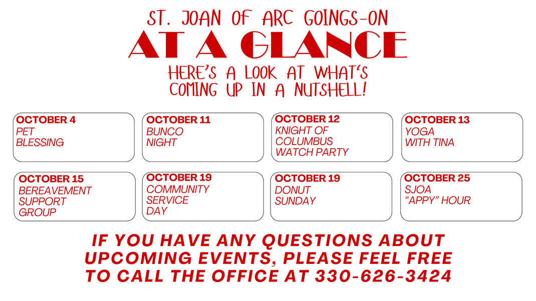 Whether you're already a parishioner, or a visitor locally or from out of town, we wish you a heartfelt welcome. Thank you for visiting our website! Here at St. Joan of Arc, we are a Catholic community open to all. Our church offers many opportunities to be involved, which you can find here on our website. Most importantly, we invite you to join us at our masses for fellowship, and worship of our Lord Jesus Christ.